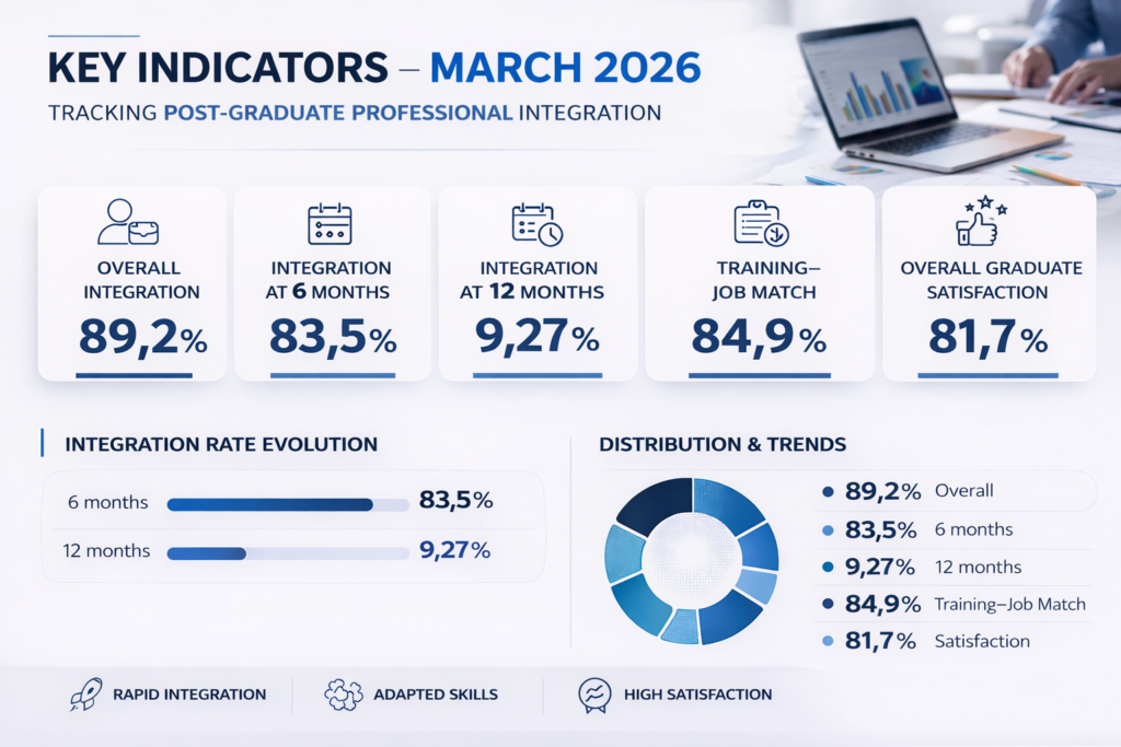 The indicators presented are based on validated collected through the Observatory survey, using the database updated to March 2026, for the graduating cohorts 2022–2023, 2023–2024, and 2024–2025.